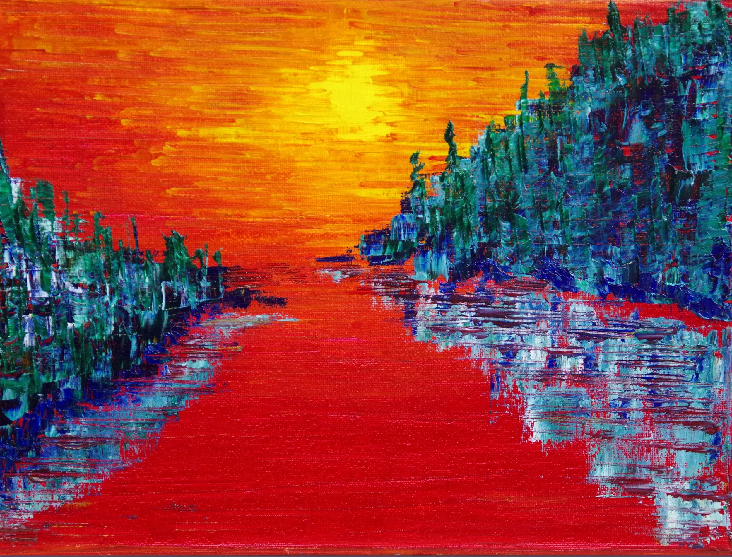 Trees and Sunset - OIl 8 by 10 $120
